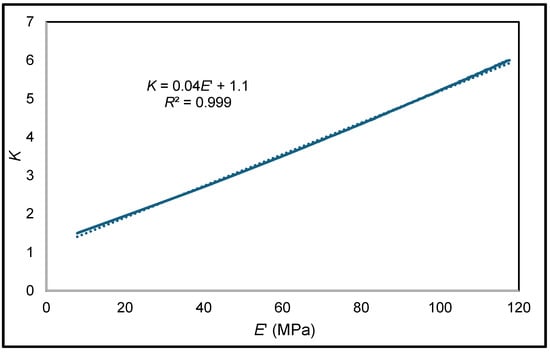 By substituting the expression for E′ in Equation (12), a relationship between the parameter K and the percentage of BR can be expressed by Equation (13):