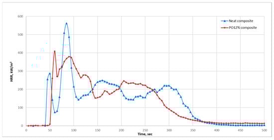 Heat release rate for the epoxy–basalt composites (incident flux 50 KW/m2).