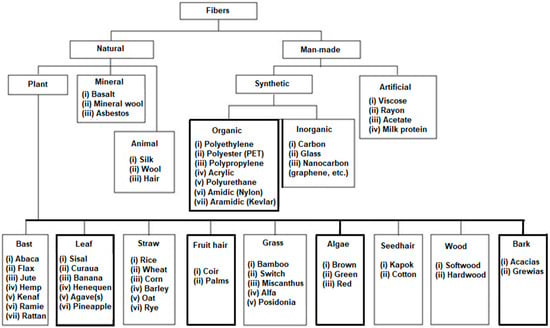 - Sarasini, F.; Fiore, V. A systematic literature review on less common natural fibres and their biocomposites. J. Clean. Prod. 2018, 195, 240–267. [Google Scholar] [CrossRef]