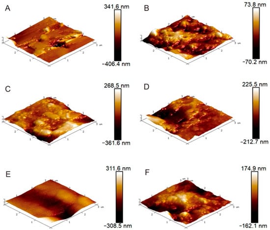 Three-dimensional atomic force microscope (AFM) roughness images of the Al alloy with different surface treatments: (A) untreated, (B) mechanically polished, (C) mechanically polished and alkali-treated, (D) mechanical polishing, alkali-treated and silanized, (E) etched, and (F) etched and silanized [131].