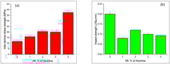 (a) Inter-laminar shear strength and (b) impact strength of composite laminates.