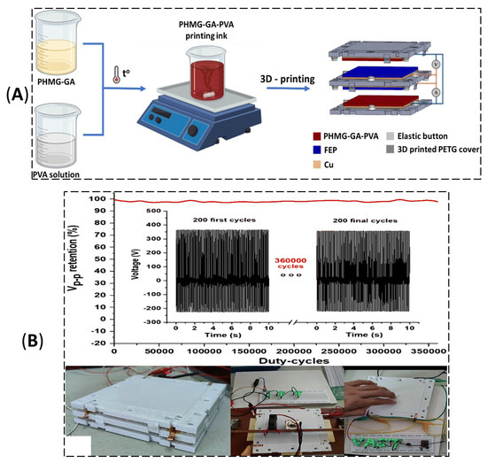 - Li, H.; Li, R.; Fang, X.; Jiang, H.; Ding, X.; Tang, B.; Zhou, G.; Zhou, R.; Tang, Y. 3D printed flexible triboelectric nanogenerator with viscoelastic inks for mechanical energy harvesting. Nano Energy 2019, 58, 447–454. [Google Scholar] [CrossRef]