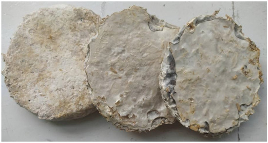 - Holt, G.A.; Mcintyre, G.; Flagg, D.; Bayer, E.; Wanjura, J.D.; Pelletier, M.G. Fungal Mycelium and Cotton Plant Materials in the Manufacture of Biodegradable Molded Packaging Material: Evaluation Study of Select Blends of Cotton Byproducts. J. Biobased Mat. Bioenergy 2012, 6, 431–439. [Google Scholar] [CrossRef]