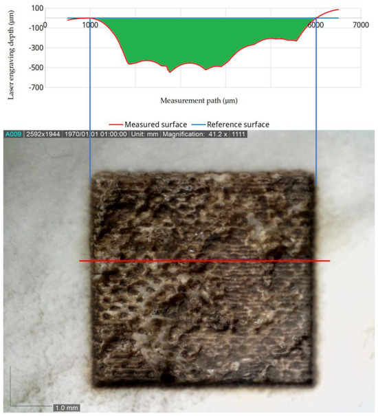 - Higher laser power resulted in more visible engravings with a distinct, blackened outline due to burning, observed in both focused (Sample A) and defocused (Sample C) conditions. As laser power decreased, the visibility and depth of the engravings diminished, eventually reaching a point where material loss was negligible and the engraving became indiscernible. Slower laser head speeds led to greater burn and deeper engravings, attributable to prolonged exposure to the laser beam.