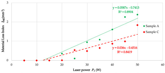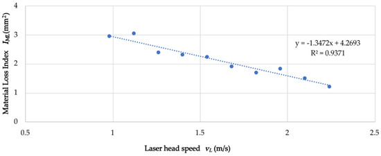 - A linear relationship was observed between laser power and the Material Loss Index () in both Trials A and C. A linear relationship was also found between laser head speed and the IML in Trial B.