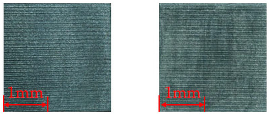 Image processing is commonly used to observe and analyse the surface morphology and structural changes of samples. Licher et al. [5] used a camera to observe the process of frictional wear on tyre surfaces and investigate tyre tread wear mechanisms. This paper presents macro-photographs of the sample surface taken before and after the test. By comparing the surface morphology of the tread rubber samples before and after the test, the macroscopic results of wet slip friction can be clearly visualised (see Figure 9). After wet friction on the surface of the sample, there are obvious scratches, and they are concentrated in the middle part of the surface, and the scratches are not uniform. This finding suggests that the actual contact between the sample surface and the pavement occurred only at the elevated regions of the friction surface. This also provides a partially realistic basis for simplifying the pavement to a sinusoidal model.