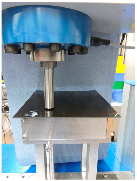 To include some more general asymmetric and multiaxial loading situations into the investigation, breadboard experiments were employed. For testing, square 190 mm × 190 mm samples were placed onto a square frame, such that simply supported boundary conditions were obtained on a square area of 150 mm × 150 mm. The specimens were indented normally by a spherical punch at an asymmetrically located position. The sphere radius of the punch was 20 mm, with the load point being located in the upper right corner of the plates. The exact load point was located 50 mm and 30 mm apart from the inner boundary of the support frame in the and directions, respectively. A photo of the test rig is presented in Figure 3.