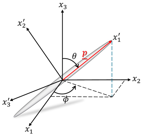 Figure 1 shows an orientation state of a prolate ellipsoid including the local coordinate systems , , and Euler angles definition where the orientation vector lies along the major axis of the ellipsoid.