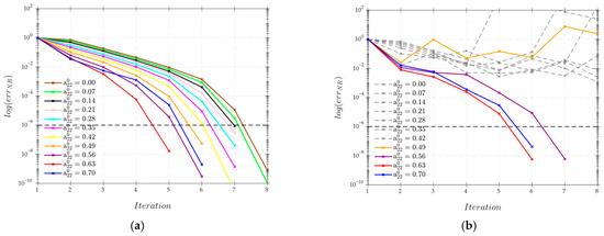 such that , and is a particle shape parameter given as for a particle with equivalent ellipsoidal aspect ratio . It is worth noting that can be related to the geometric aspect ratio of various axisymmetric particle shapes such as cylindrical particles [47]. We define components of the Newton-Raphson residual in Equation (8) for computing the steady-state orientation of the vector in Equation (9) as