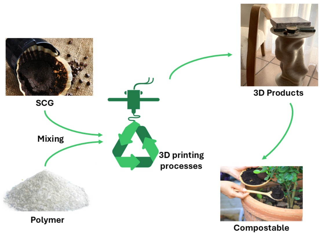 Boughanmi O, Allegue L, Marouani H, Koubaa A, Beauregard M. Upcycling Spent Coffee Grounds-Based Composite for 3D Printing: A Review of Current Research. Journal of Composites Science. 2025; 9(9):467. https://doi.org/10.3390/jcs9090467