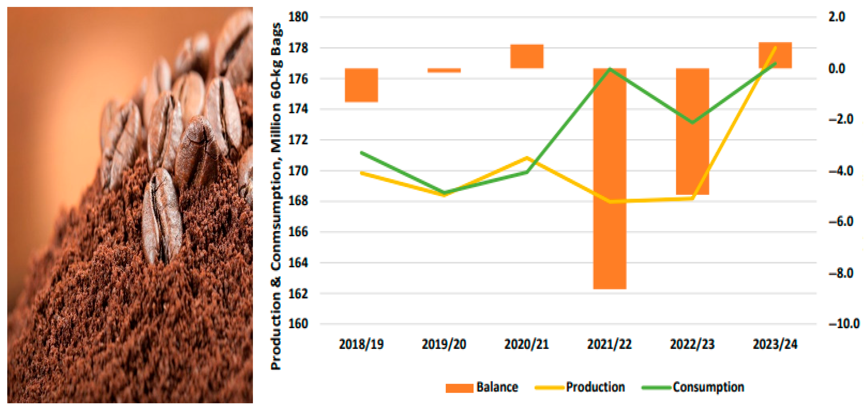 - International Coffee Organization ICO. International Coffee Organization Coffee Report and Outlook. 2023. Available online: https://icocoffee.org/documents/cy2023-24/Coffee_Report_and_Outlook_December_2023_ICO.pdf (accessed on 19 August 2025).