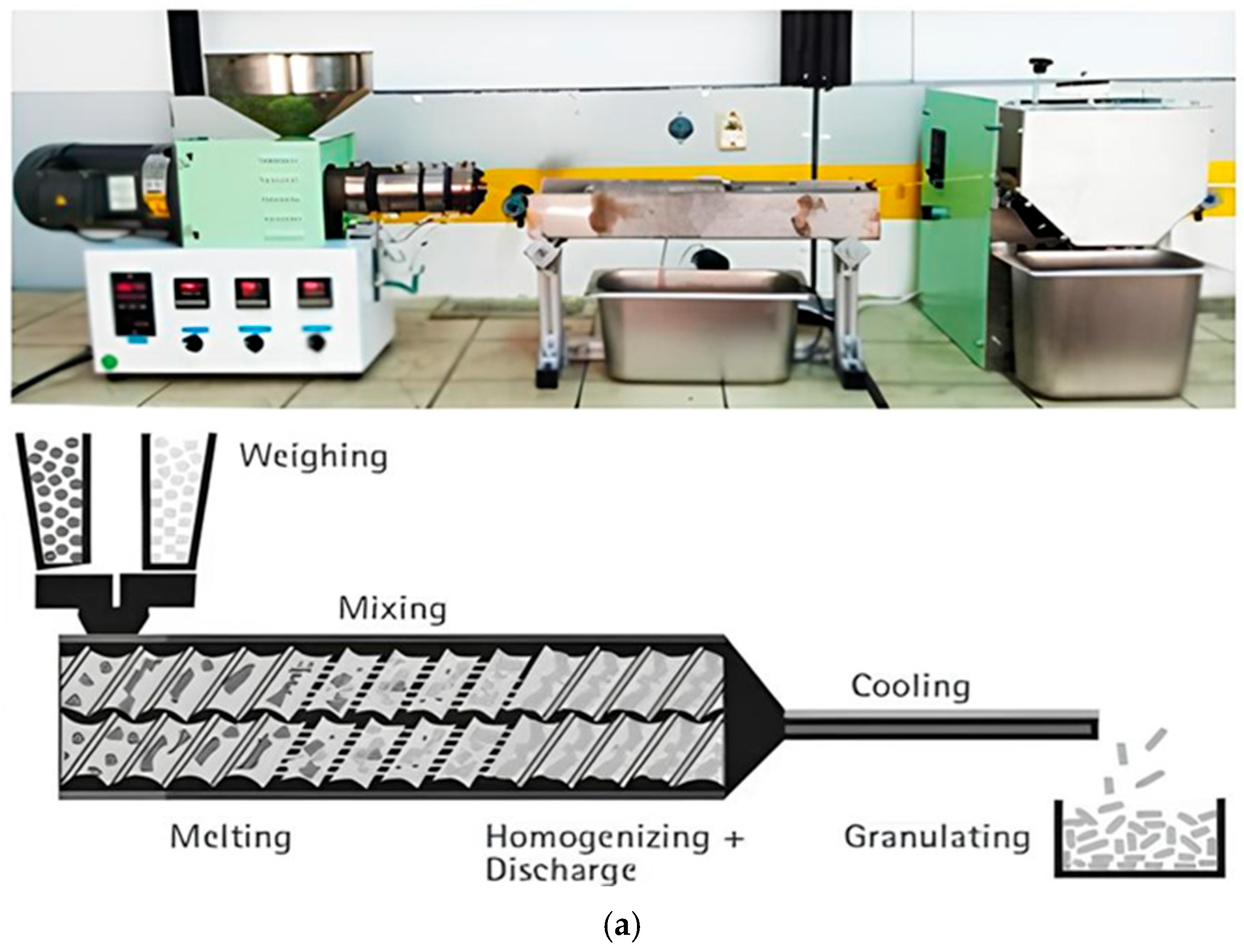 - Sohn, J.; Ryu, Y.; Yun, C.-S.; Zhu, K.; Cha, S. Extrusion Compounding Process for the Development of Eco-Friendly SCG/PP Composite Pellets. Sustainability 2019, 11, 1720. [Google Scholar] [CrossRef]