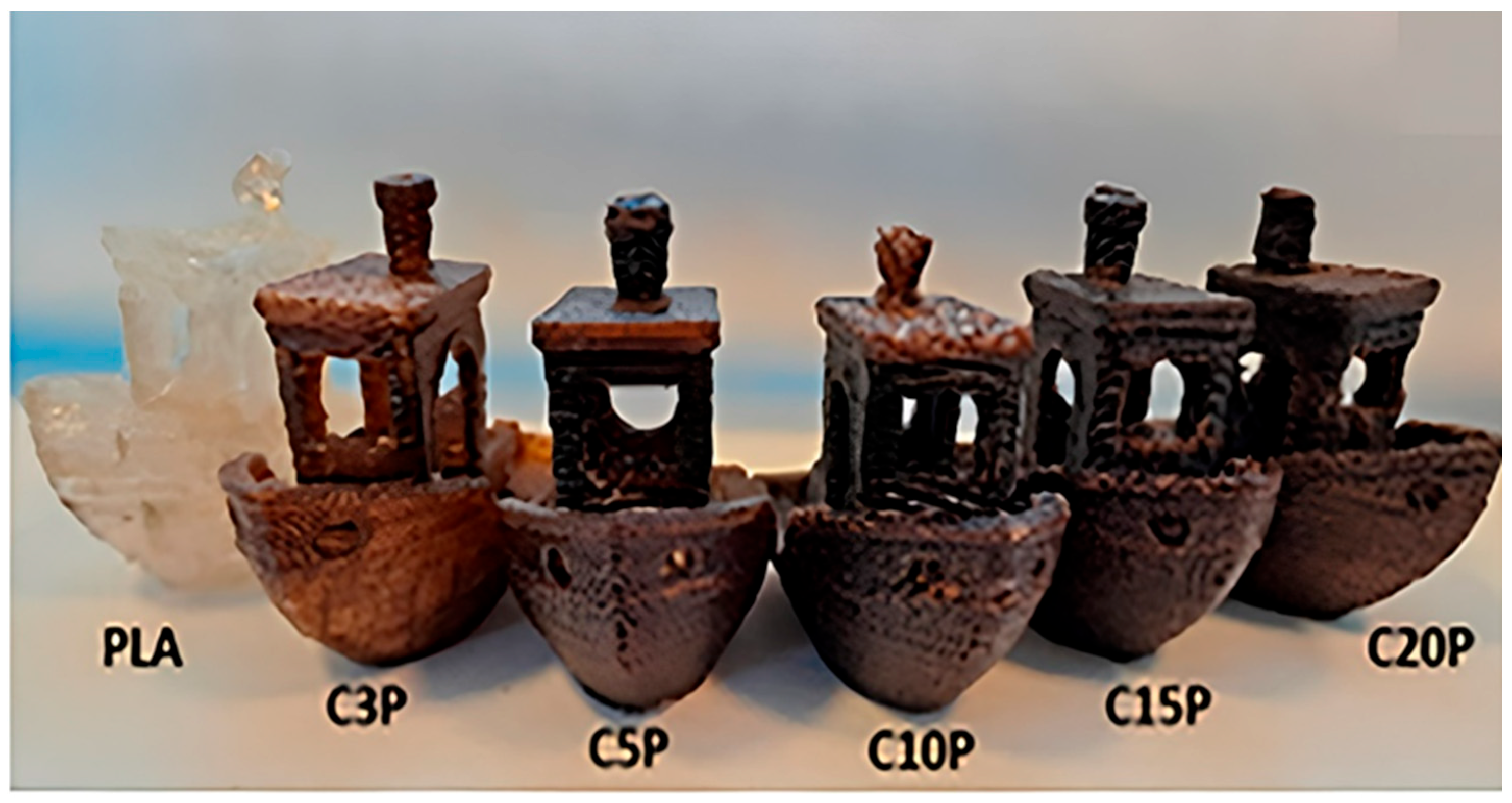 - Alhelal, A.; Mohammed, Z.; Jeelani, S.; Rangari, V.K. 3D Printing of Spent Coffee Ground Derived Biochar Reinforced Epoxy Composites. J. Compos. Mater. 2021, 55, 3651–3660. [Google Scholar] [CrossRef]