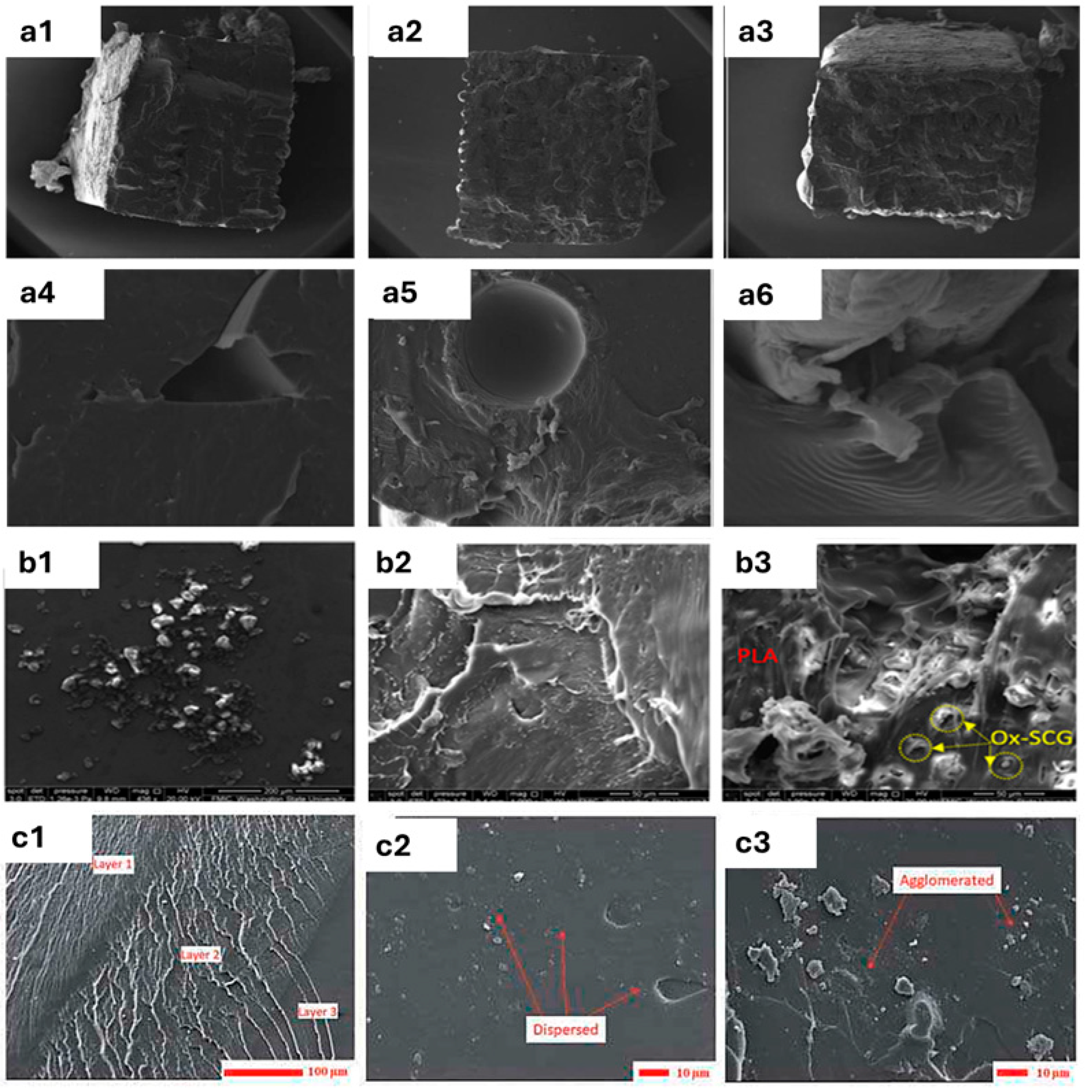 | PLA | SCG | 0, 5, 10, 15, 20 | _ | Oil extraction | FDM | At 20 wt%, Ox-SCG loading resulted in a remarkable 418.7% increase in toughness, reaching 25.24 MJ/m3, while only incurring a 26% reduction in storage modulus compared to pure PLA. | [13] |