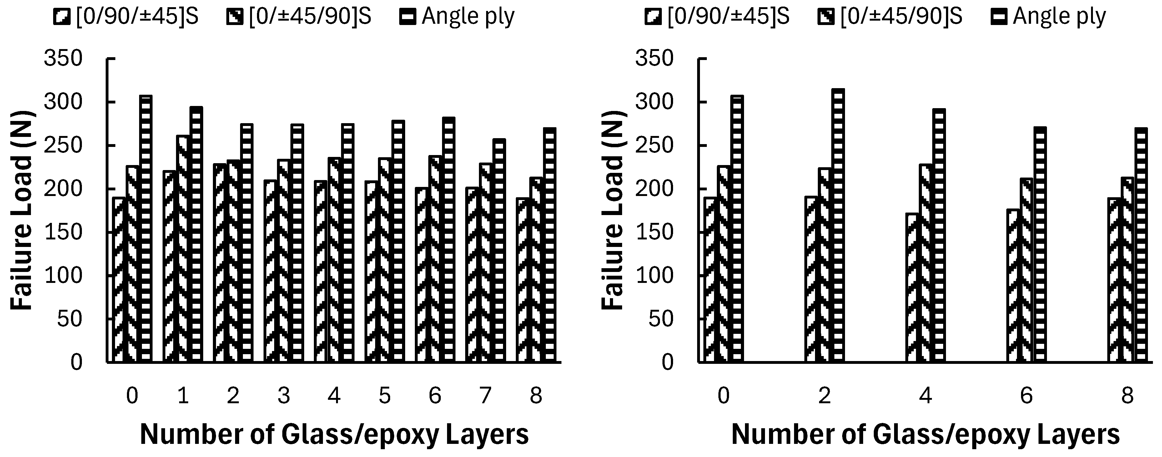 - Optimal ply orientation: The best-performing laminates have ply angles ranging from 12° to 30°, depending on the layup configuration.