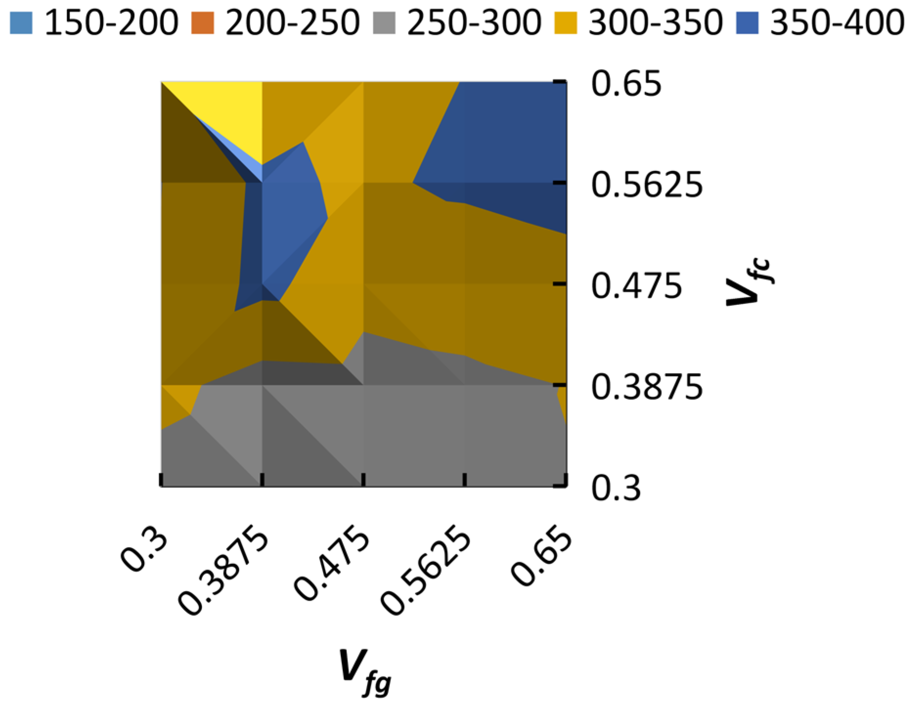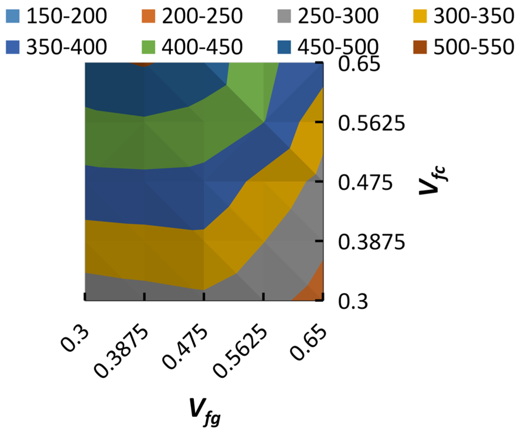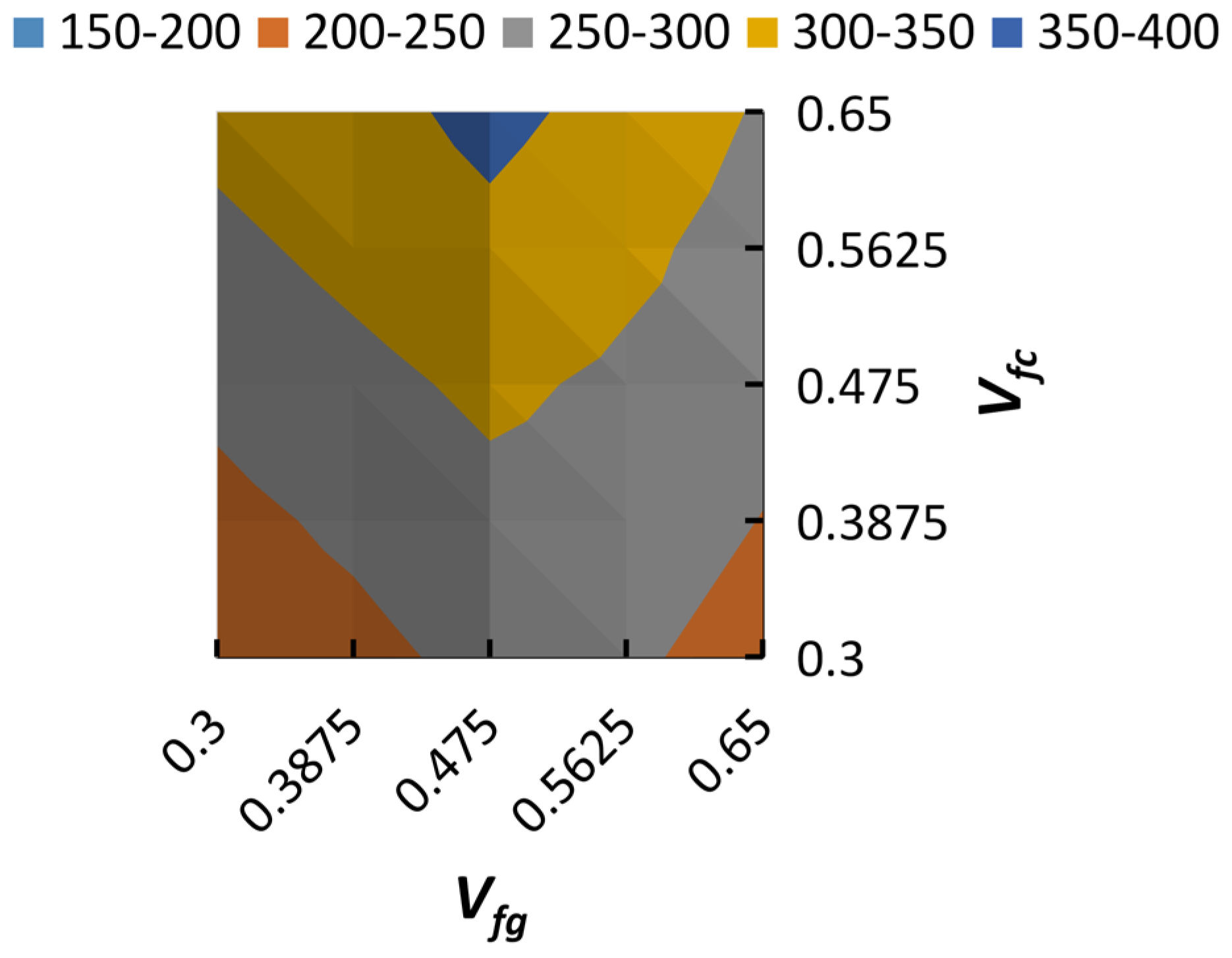 - Fibre volume fraction effects: The failure load is highly sensitive to both carbon (Vfc) and glass (Vfg) fibre volume fractions. The optimum region is Vfc = 0.3–0.65 and Vfg < 0.5625 to prevent strength reduction.