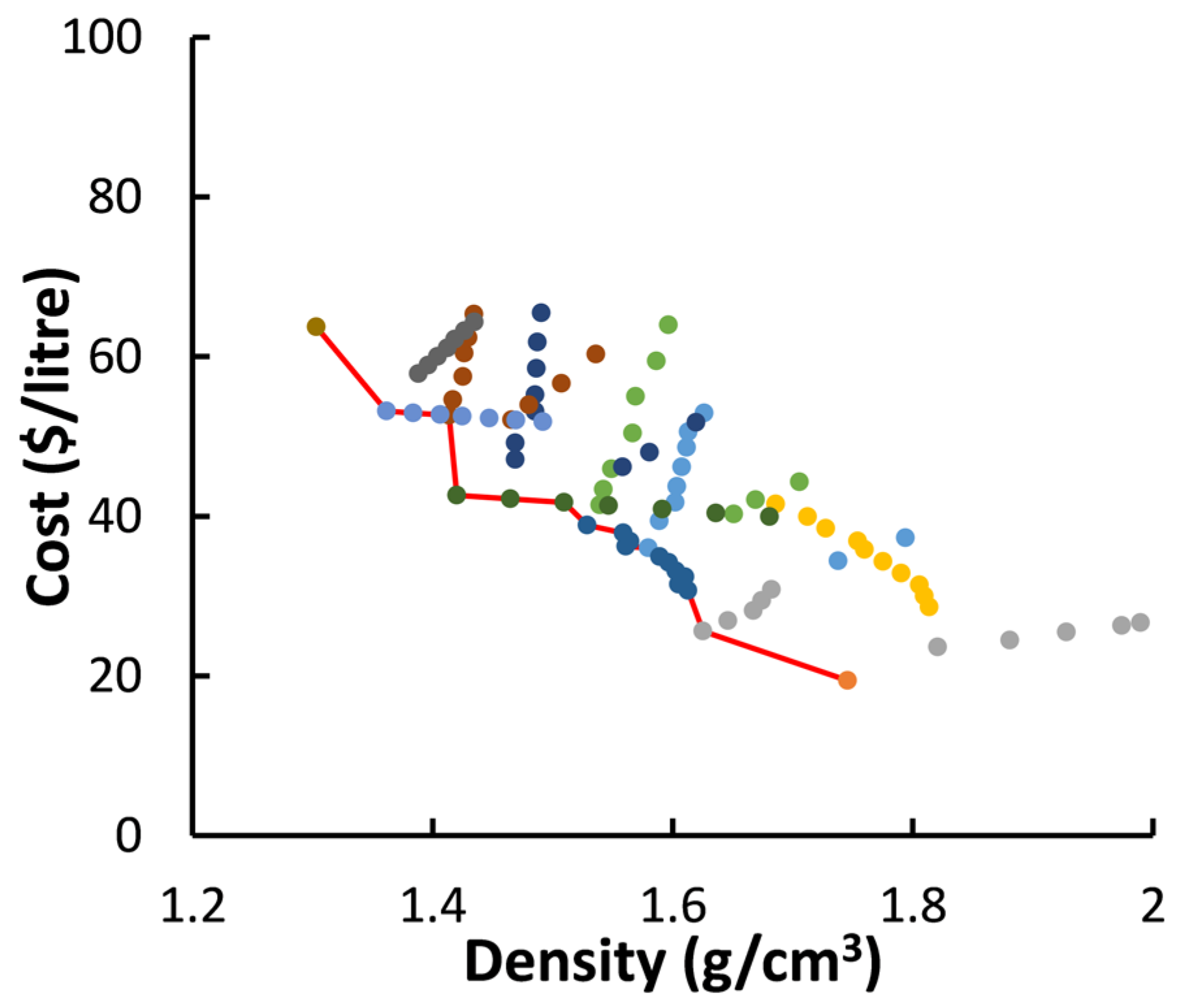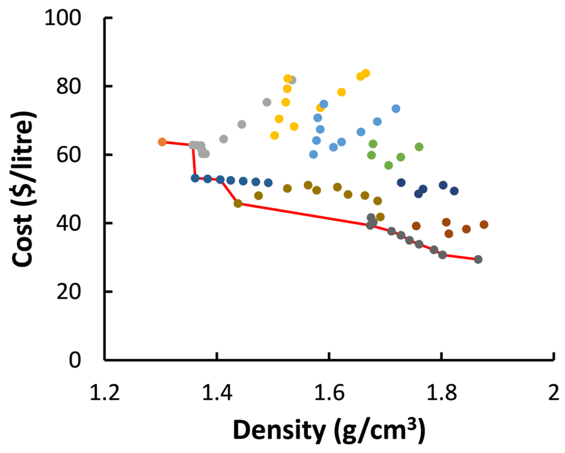 Material | Elastic Modulus (GPa) | Tensile Strength (MPa) | Density (g/cm3) | Cost ($/Litre) |
