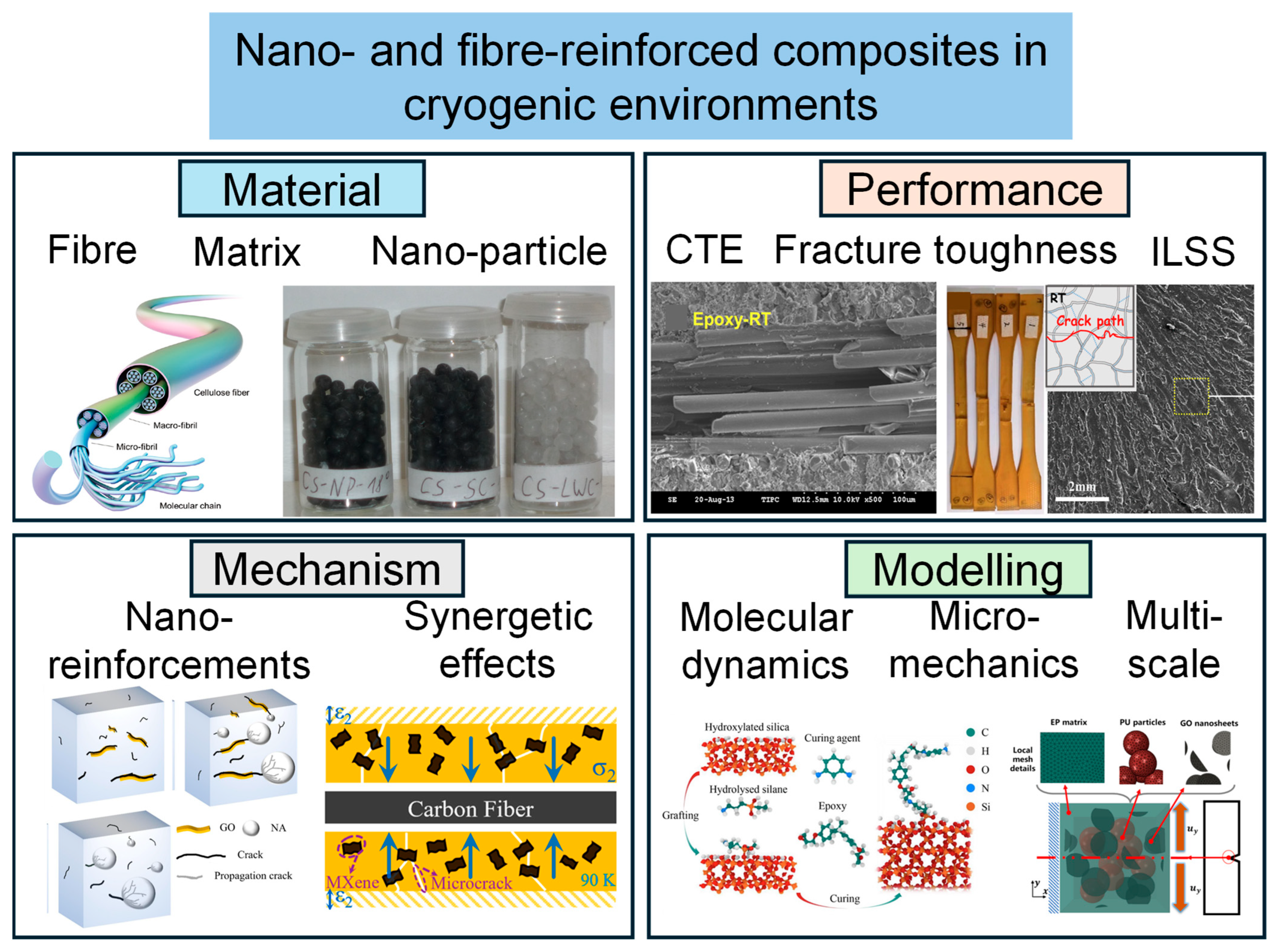 Huang, F.; Han, Z.; Wei, M.; Gan, Z.; Wang, Y.; Lu, X.; Yin, G.; Zhuang, K.; Zhang, Z.; Gao, Y.; et al. Cryogenic Performance and Modelling of Fibre- and Nano-Reinforced Composites: Failure Mechanisms, Toughening Strategies, and Constituent-Level Behaviour. J. Compos. Sci. 2026, 10, 36. https://doi.org/10.3390/jcs10010036
