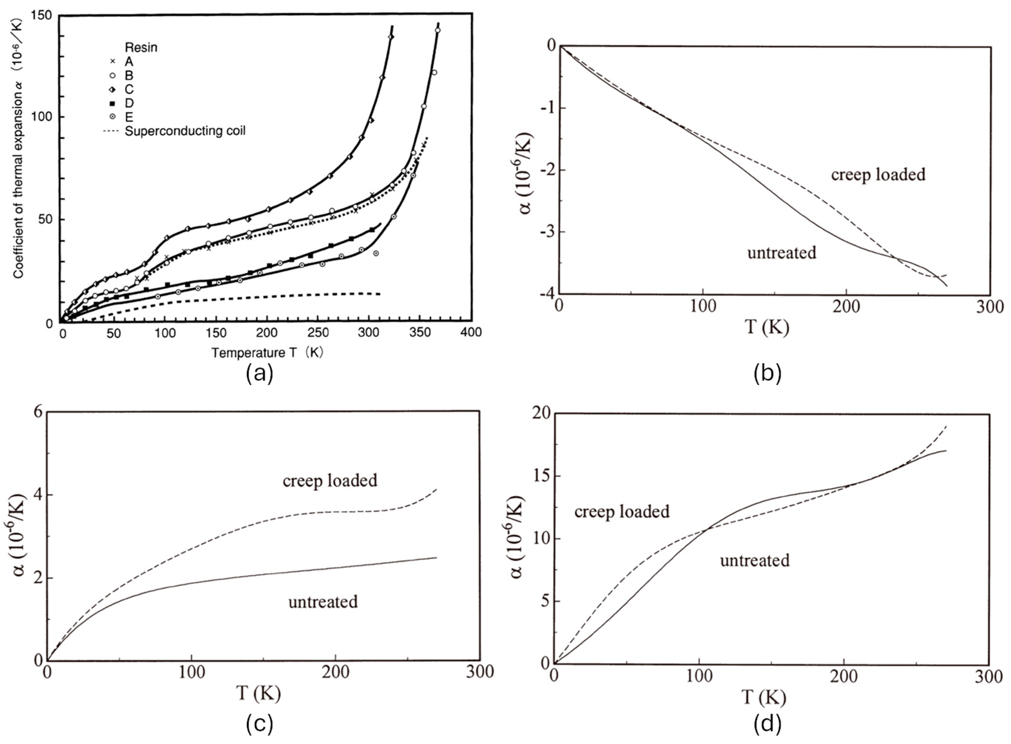 - Baschek, G.; Hartwig, G. Parameters influencing the thermal expansion of polymers and fibre composites. Cryogenics 1998, 38, 99–103. [Google Scholar] [CrossRef]