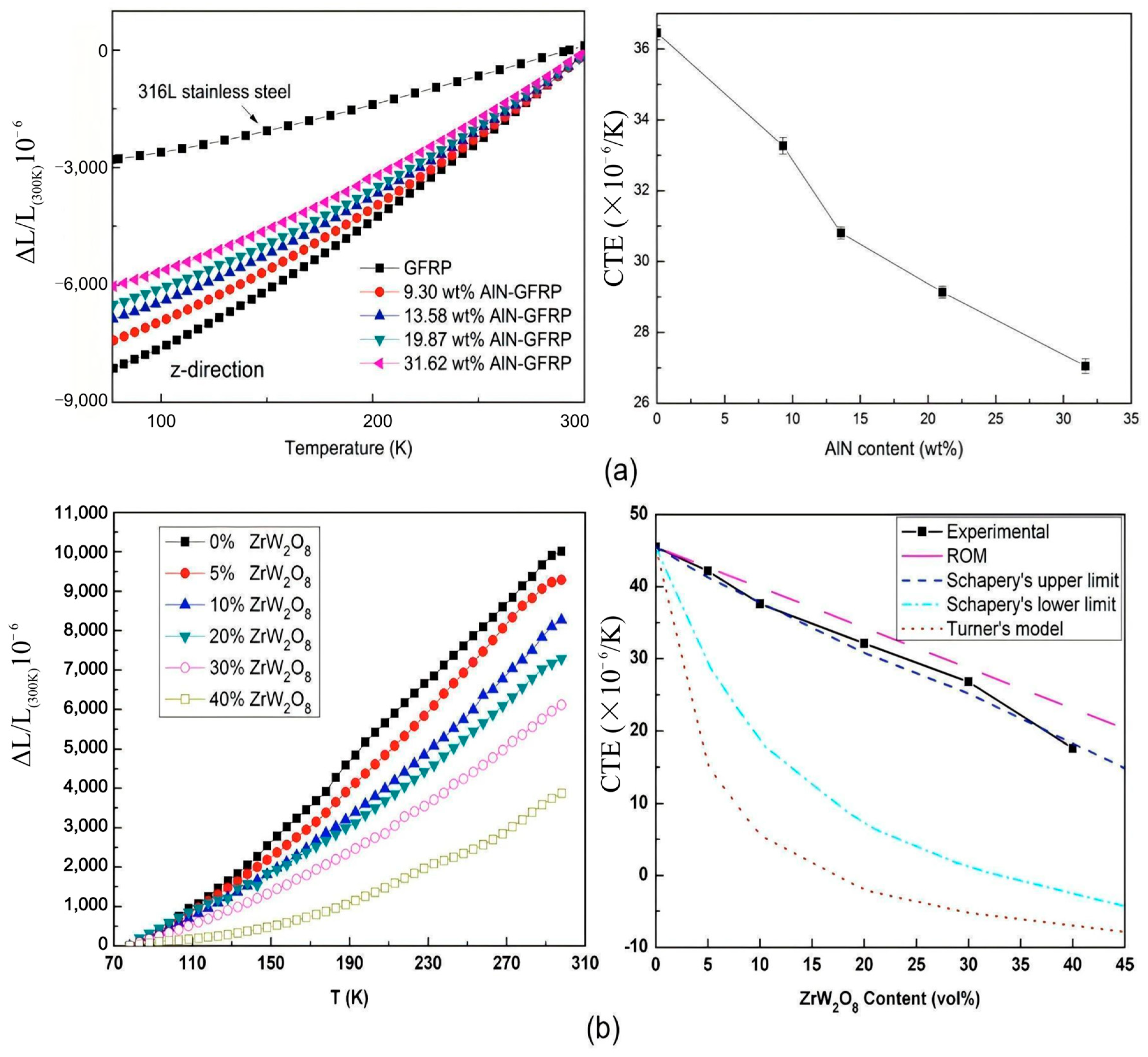 - Jin, R.; Xu, B.; Qu, L. Cryogenics performance enhancement of epoxy resin composites through negative expansion nanomaterials: Mechanism and predictive modeling. Polym. Compos. 2024, 45, 11892–11907. [Google Scholar] [CrossRef]