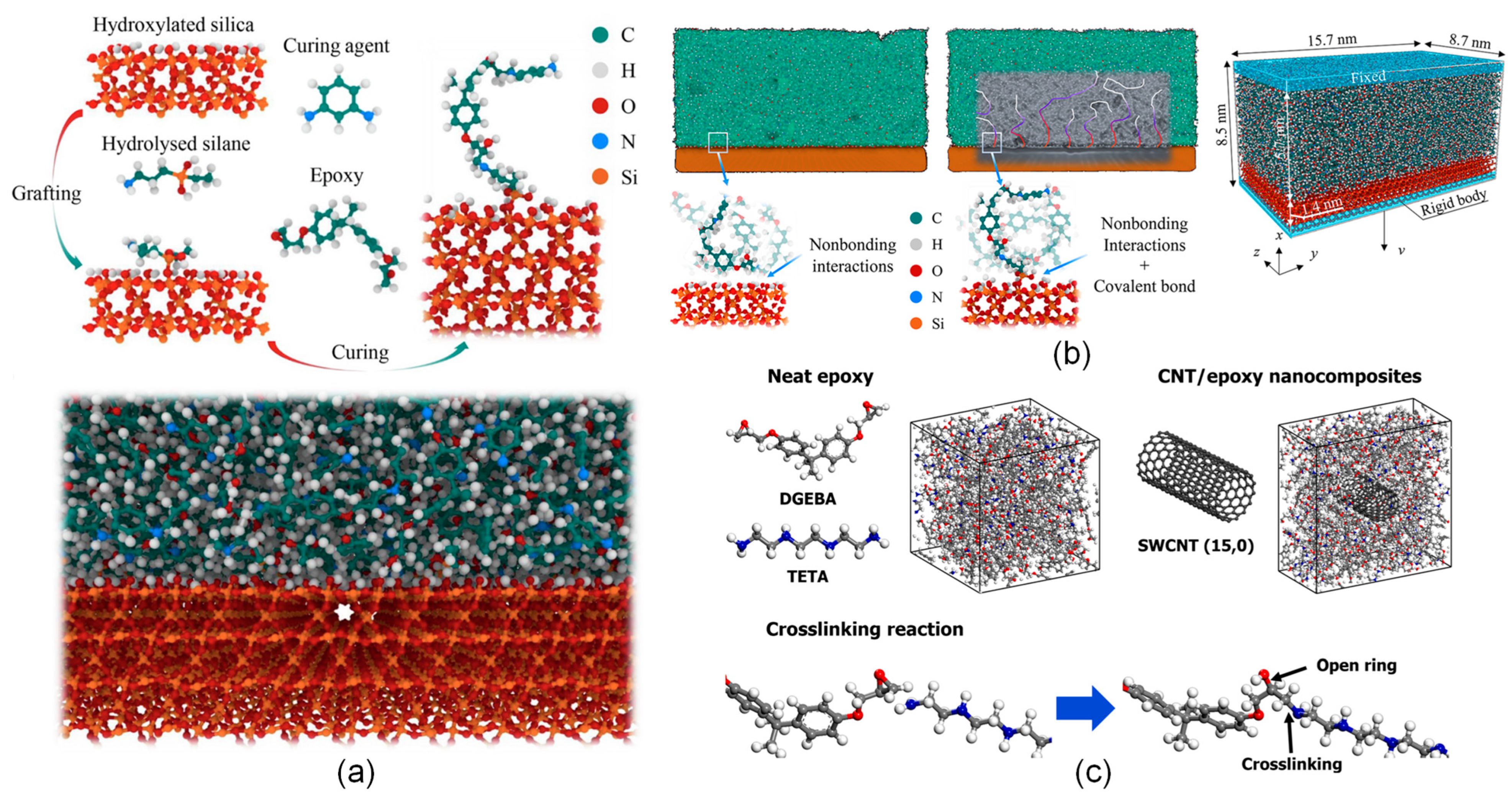 - Raj, A.; Alvi, S.M.; Islam, K.; Motalab, M.; Xu, S. An Atomistic Study of the Tensile Deformation of Carbon Nanotube–Polymethylmethacrylate Composites. Polymers 2023, 15, 2956. [Google Scholar] [CrossRef]
