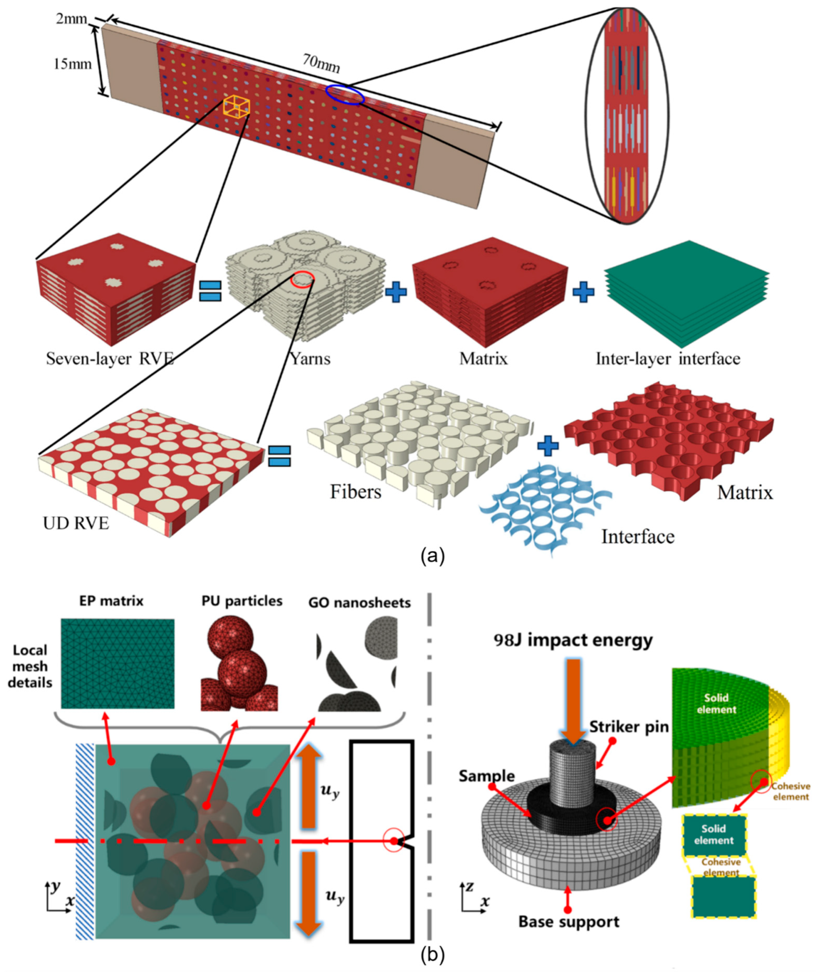 - Zhang, Y.; Cai, J.; Cai, Q.; Wang, L.; Gou, X. Strength and energy absorption characteristic of nanoparticle-reinforced composites considering interface curvature dependence. Compos. Struct. 2025, 360, 119036. [Google Scholar] [CrossRef]