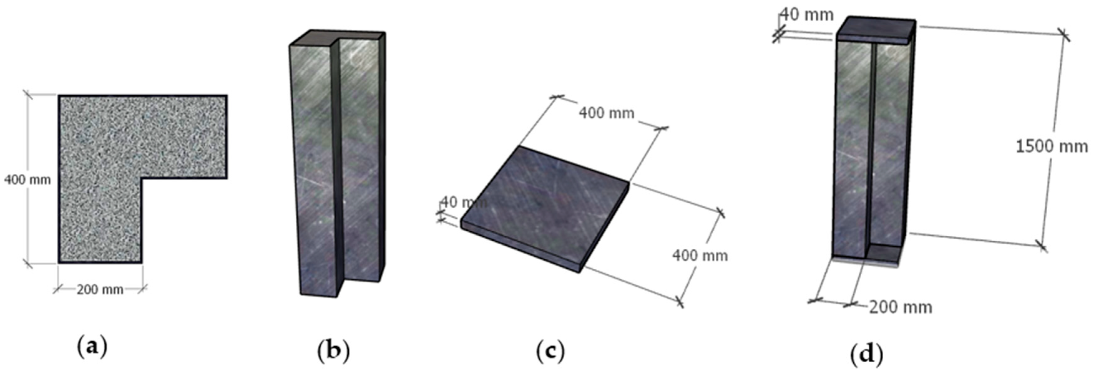 - Li, H.; Tao, Z.; Han, D.; Wang, M. Experimental Study on Axial Compressive Performance of L-Shaped CFST Columns with Various Cross-Section Forms. Buildings 2026, 16, 34. [Google Scholar] [CrossRef]