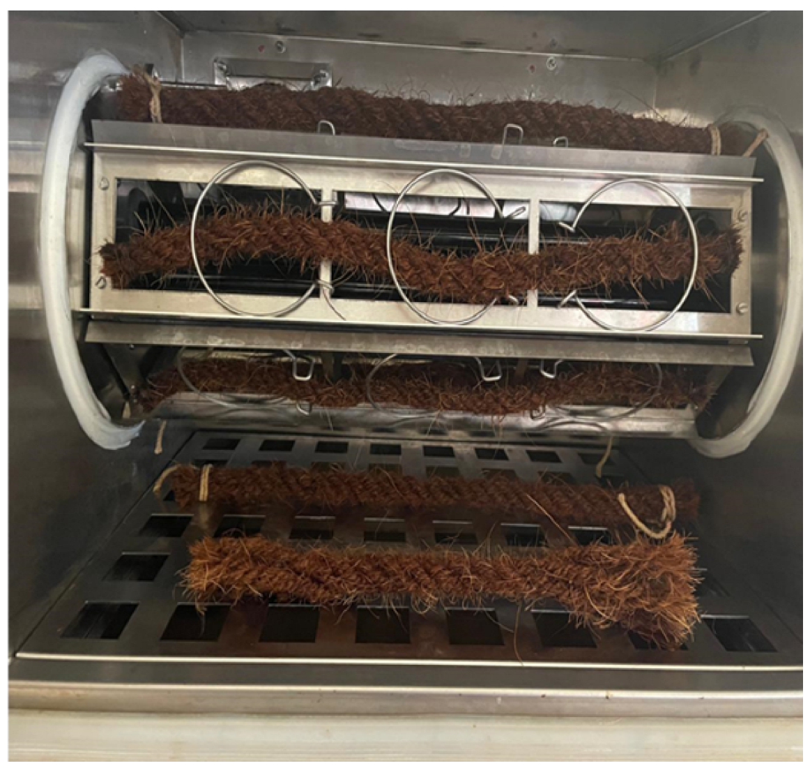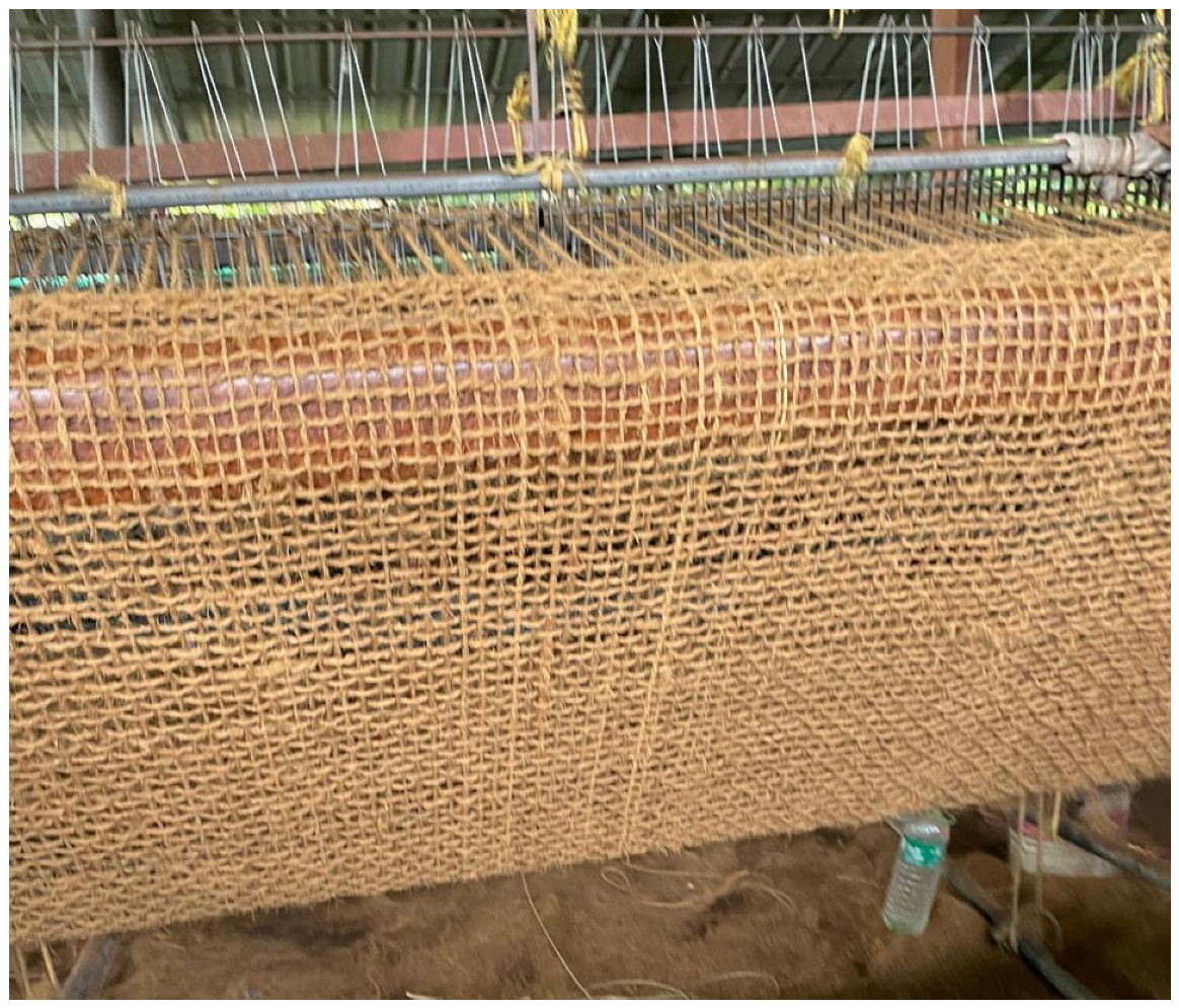 - A woven coir geotextile composite barrier fabricated using multi-strand coir ropes exhibited a high mass per unit area (3750 g/m2) and maintained structural integrity at full scale, demonstrating its suitability for load-bearing barrier applications.