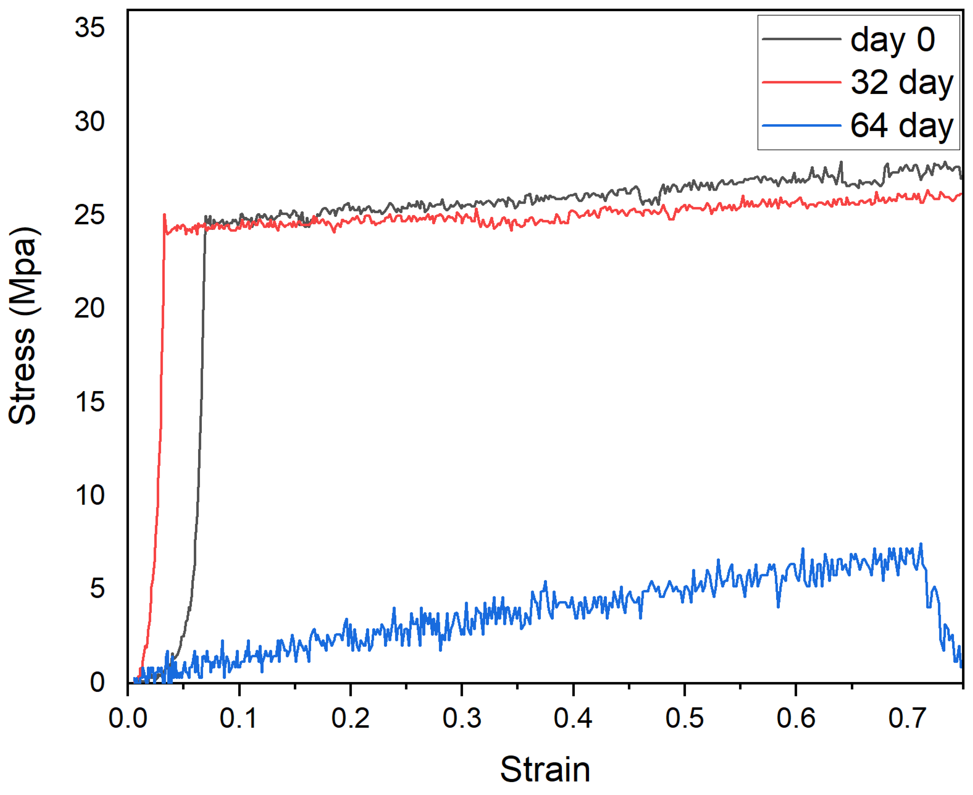 4.3. Effect of Accelerated Degradation on Mechanical Properties
