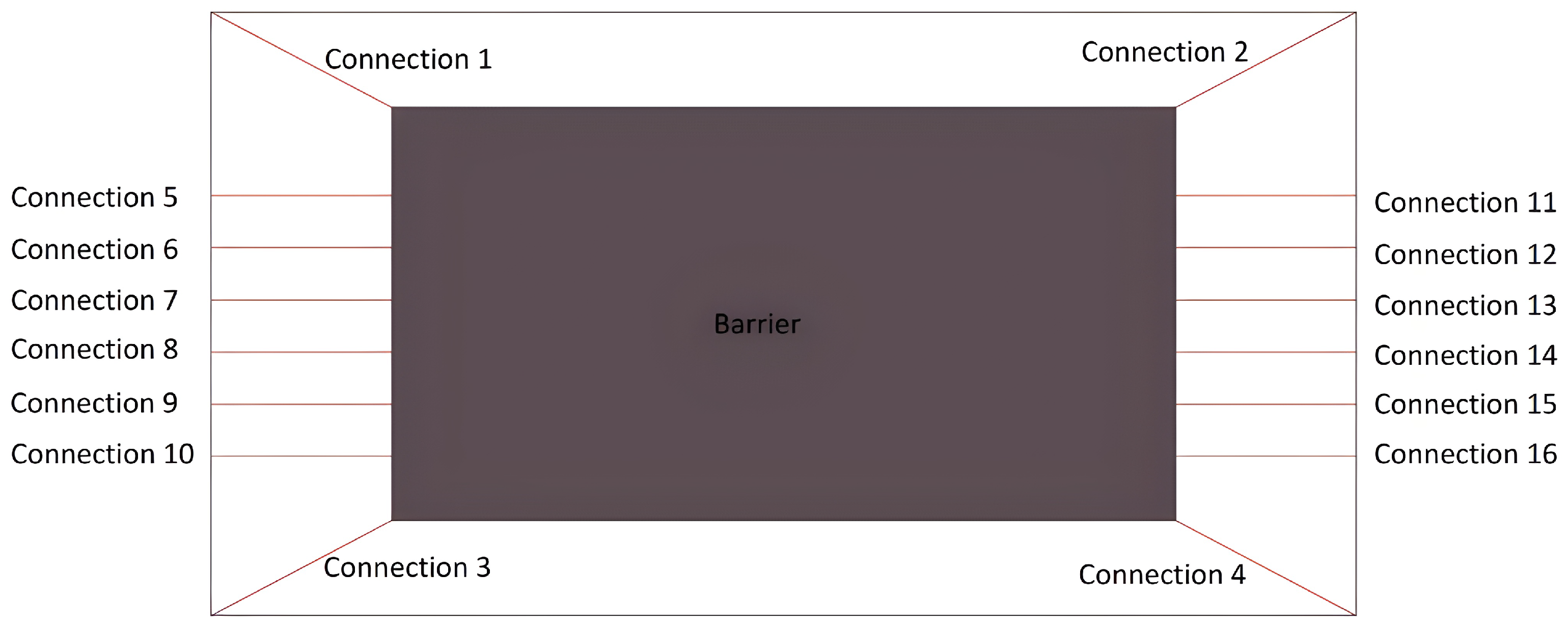 - Vertical drop impact tests demonstrated that the coir geotextile composite barrier was capable of resisting peak impact loads ranging from approximately 6 to 51 kN, depending on the drop mass, drop height, and connection configuration. Increasing the connection density significantly improved load redistribution, reduced localized damage, and enabled the barrier to retain impacting masses even after partial connection failure.