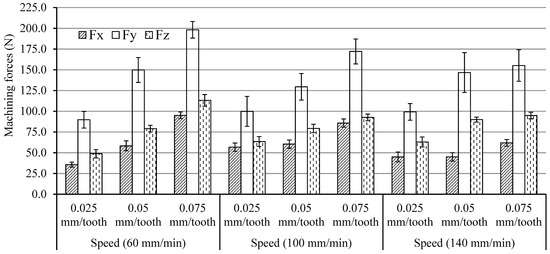 - Machining forces increase with the increase of feed at all speeds with the increase of material removal rate. The influence of machining speed on the forces was insignificant without following any trend. These behaviors could be attributed to the combined effects of thermal softening and strain hardening of machined materials in different machining conditions.