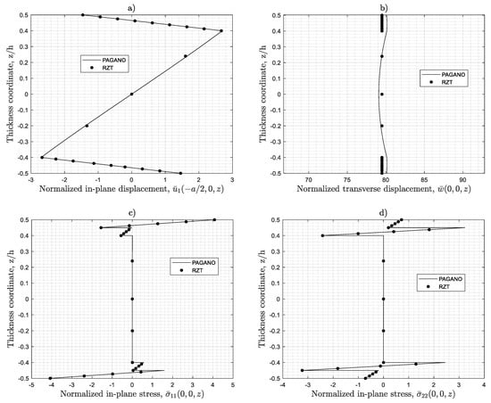 - Pagano, N.J. Exact solutions for rectangular bidirectional composites and sandwich plates. J. Compos. Mater. 1970, 4, 20–34. [Google Scholar] [CrossRef]