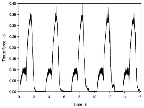 Thrust force signature for Run 1 (2600 rev/min, 0.1 mm/rev).