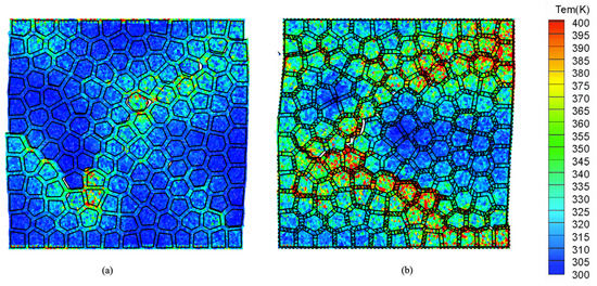 Hot-spot generation with different grain volume fraction under compressive loading (a) Vol = 64%; (b) Vol = 82%.