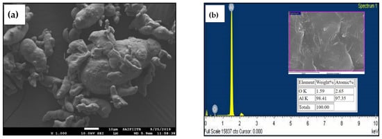 (a) SEM micrograph of aluminum powder (b) EDS scan of aluminum powder.