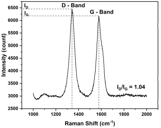 Figure 3a displays the scanning electron microscope (SEM) micrograph of as-synthesized CNT. SEM image reveals that the diameter of synthesized CNT is in the range of 20–25 nm with a length of few microns. Figure 3b shows the high-resolution TEM image of CNT. TEM shows approximately 20 walls in the as-synthesized CNT, confirming that nanotubes are multiwalled. Obtained nanotubes have bamboo-like internodes. The internodes present in the nanotubes enhance the strength of the CNTs. The number of walls of MWCNT depends upon the processing parameters, such as a catalyst, precursor, operating temperature, and residence time of precursor [27]. The XRD scan of MWCNT, shown in inset Figure 3a, illustrates the peaks (002) at 26° and (100) at 43° agree with typical graphitic structure. The CNT’s quality is assessed using an HR800-UV confocal micro-Raman spectrometer from Horiba Jobin Yvon, Paris, France. The anti-Stokes scattering technique is used in Raman analysis. Figure 4 shows Raman spectra of synthesized MWCNT. The Raman spectra of synthesized CNT show D- Band at 1340 cm−1 and G -Band at 1580 cm−1, with an ID/IG ratio of 1.04. The as-produced MWCNTs were crystalline.
