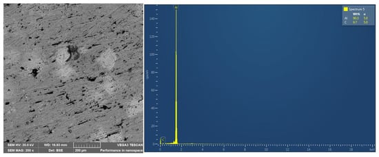 Scanning electron micrograph and EDS chart of 0% wood-particle-reinforced composite.