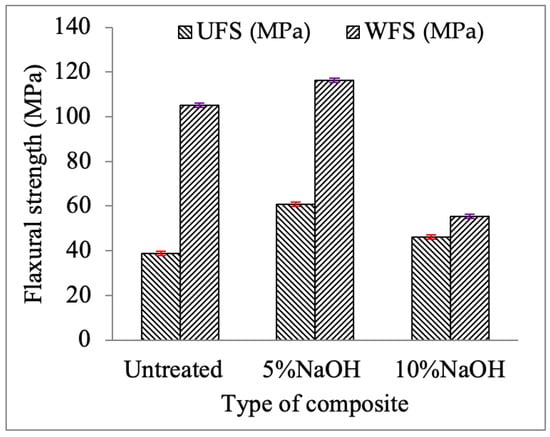 - Tensile and flexural strengths of a 10% NaOH composite are similar to those of untreated fibers in unidirectional fiber orientation composites but less so in woven fiber orientation composites.
