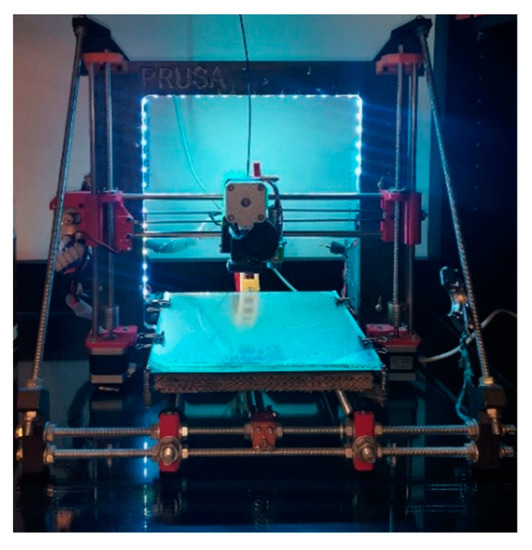 For the preparation of specimens with disk-shape geometry, a 3D printer (Prusa MK3S, Figure 1) for PP and PA12 and an injection molding desktop system (Xplore micro–Injection Moulder IM12) for TPU and PEKK were employed.