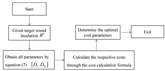 In practical engineering, the same sound insulation may correspond to a variety of combinations of polyvinyl chloride and non-woven fibers with different thicknesses. The total cost of different combinations is also different. The calculation framework of the model to determine the best cost scheme is as shown in Figure 5.