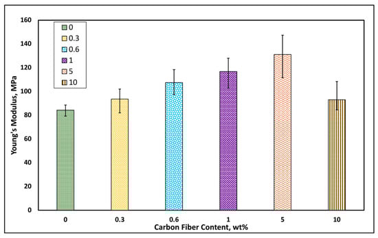 Effect of carbon fiber content in SLS-Printed fully cured thermosetting samples on Young’s Modulus.