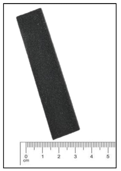 DMA was performed to observe the effect of CF content on the thermomechanical properties of 3D-printed cured samples. A fully cured 3D-printed PPP/CF composite sample is shown in Figure 6. The bar chart in Figure 7 shows that the storage modulus of composites increased due to the addition of CF content. Adding fibers to the polymer matrix made an excellent stress transfer at the interface. This stress transfer between the matrix and fibers was primarily responsible for the rise in storage modulus as the interface area increased with the increment of CF content in the epoxy thermoset. Additionally, the storage modulus of composites improved when interactions between the fiber-fiber and fiber-matrix constrained the motions of polymer chains [,]. When the temperature increased, there was no longer any stress transfer between the fiber and matrix because composite matrix components were more mobile and began to move from one component to another []. Therefore, it was evident that the composites’ storage modulus dropped due to the temperature rise.