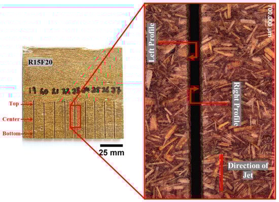 - Masoud, F.; Sapuan, S.M.; Ariffin, M.K.A.M.; Nukman, Y.; Bayraktar, E. Experimental analysis of kerf taper angle in cutting process of sugar palm fiber reinforced unsaturated polyester composites with laser beam and abrasive water jet cutting technologies. Polymers 2021, 13, 2543. [Google Scholar] [CrossRef]