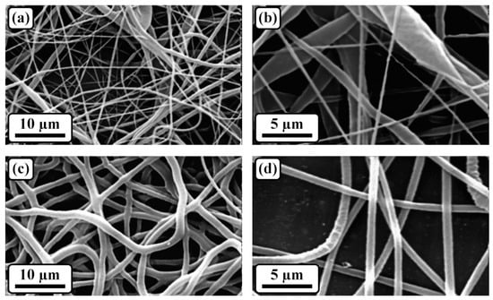Poly(glycerol sebacate) (PGS) is a tough polyester which is synthesized by the polycondensation of glycerol and sebacic acid. It is a biocompatible, elastic, and biodegradable polyester, and its degradation products can be removed by the body’s metabolism. However, this polymer does not have an ideal hydrophilicity and degradation rate and cannot form a nanofibrous structure due to its low spinnability [,,]. Thus, it should be blended with hydrophilic polymers.