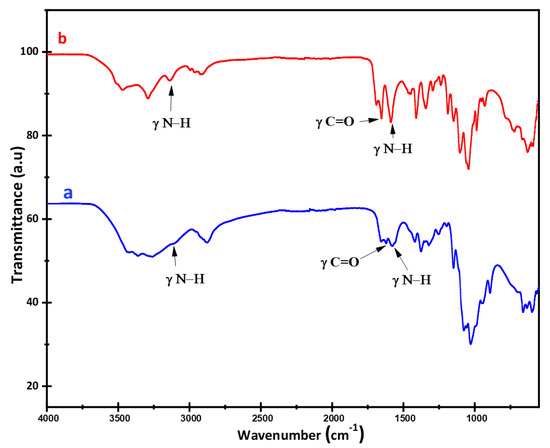 Infrared absorption spectrum of the extracted chitosan (a) and chitin (b).