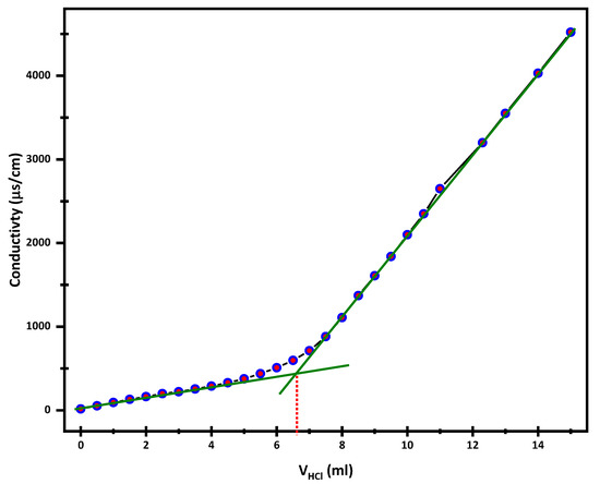 According to Yu et al. [47], conductometric titration is an adequate and appropriate method to determine the degree of deacetylation of chitosan, except for some samples with a high degree of crystallization. This titration method was carried out in basic and acidic media.
