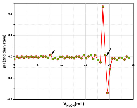 pH secondary derivative curve corresponding to the titration of the prepared chitosan solution.