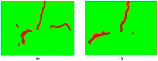 Figure 6 shows the results of the developed algorithms. The models show segmented areas containing a defect—a crack.