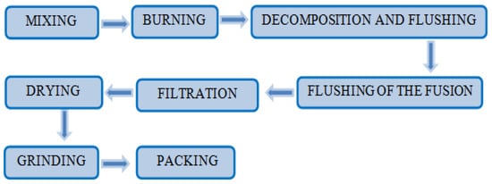 Today, on the territory of the Republic of Kazakhstan, production sites contain a huge amount of industrial metallurgical waste, which poses a very strong hazard to the environment [,,]. In recent years, researchers from different countries have been working on the synthesis, characterization and determination of the properties of various types of inorganic pigments obtained from traditional raw materials, as well as by using various industrial wastes from the Aktobe ferroalloy compounds plant in the Republic of Kazakhstan [,,]. The complete recycling of chrome industrial waste improves the environmental situation and reduces the cost of production of chrome-containing products and pigments [,].