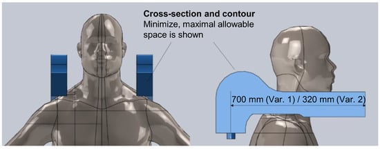 Maximal design space and placement for the “horizontal cantilever”, that is, the main part of the planned exoskeleton.